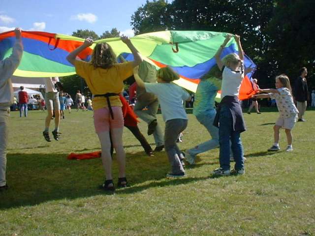 Gruppenerlebnis. Diverse Spiele mit dem großen Schwungtuch. Nur einsetzbar bei hoher